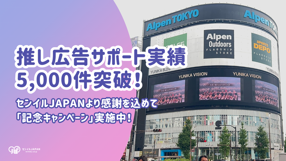 このたびセンイルJAPANは、2025年8月をもちまして、推し広告(センイル / 応援広告)のサポート実績が累計5,000件を突破いたしました🎉
