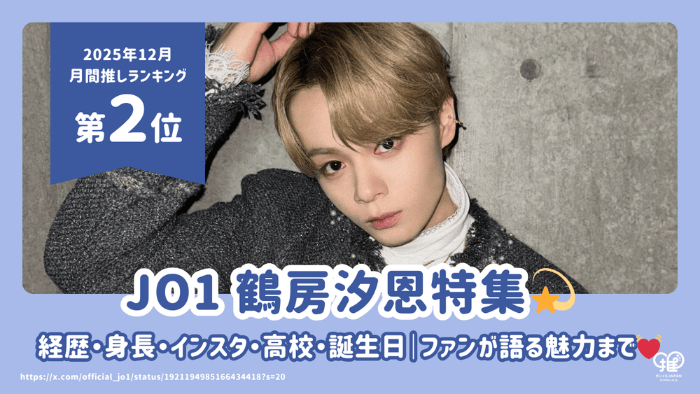 今回は2025年12月の推しランキングで第2位に選ばれた、JO1 鶴房汐恩くん特集をお届けしました♪