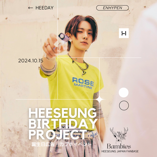 Enloysen Heeseung -Kun을 지원하는 일본 팬베이스입니다. 우리는 Senil Planning Team Bambies를 시작하여 일본에서 Hissun의 생일을 활기차게하고 매년 생일 프로젝트를 운영했습니다!
