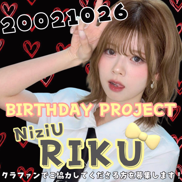 NiziU의 RIKU짱이 전력을 다해응원주로 X(트위터)에서 전 세계로최애여러분의 미소와 귀여움을 전해드립니다! ! 올해는 NiziU 데뷔 5주년이기도 하고, RIKU의 생일을 일본에서도 축하해주고 싶어서 처음으로 생일 프로젝트를 시작하게 되었어요!