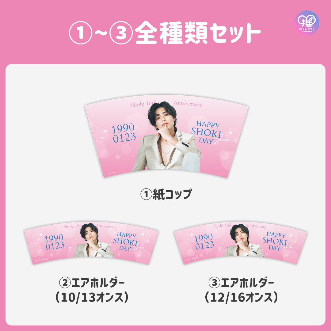 サイズ | ①紙コップ ②エアホルダー(10/13オンス) ③エアホルダー(12/16オンス) |