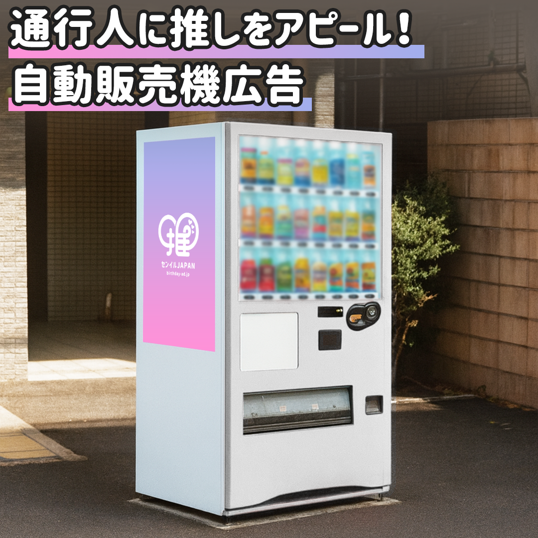 街中の自動販売機の側面に推し広告を掲載できる自動販売機広告!🥤✨